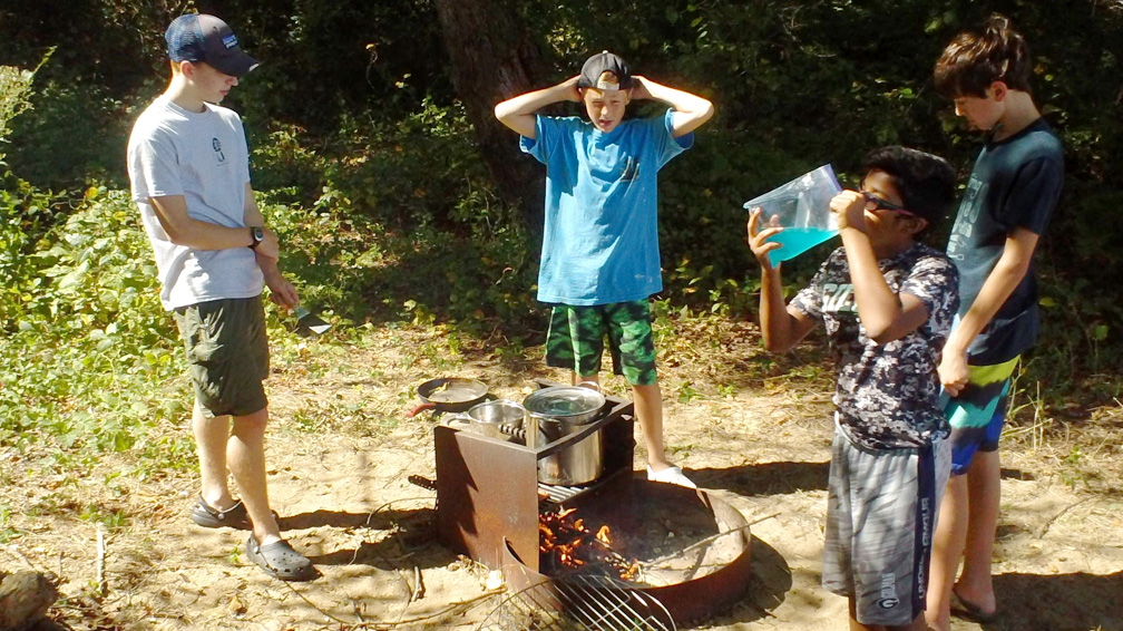The troop woke up early Saturday morning and embarked, via canoes, kayaks, and motorboats to Hart Miller Island. Water skiing, kayaking, and tubing highlighted the tiki lit Hawaiian luau themed trip.